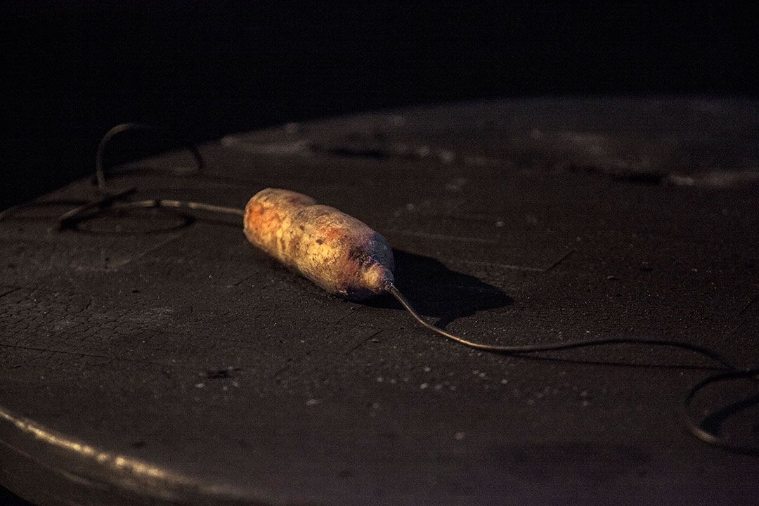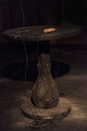Masturpiece, obviously, is a portmanteau word, made of “masterpiece” and “[…]”. The work is a possible extension to The Stone Operation by Hieronymus Bosch. In Bosch’s day, the stone operation was a piece of quackery in which the patient was supposedly cured of his stupidity through the removal of the stone of folly from his forehead… The name “Lubbert” […] frequently appears in Dutch literature to designate persons exhibiting an unusually high degree of human stupidity. The narrator is that dismembered stone, a petty phallic entity. He refers to Lubbert as his master and to an object of his dreams as his own pebble. He tries to tell the story of this other stone, this pebble that he has seen in one of his dreams. In the first dream the pebble appears like a rolled wax, like the wax of Descartes’ Meditations, it becomes distorted because of proximity to the fireplace. The narrator recounts the process of alteration of this imaginary pebble into a woman and describes how he has dreamt of her organs in a creative act of onanism. After this hurried formation, the wrapped woman that we see in the works, who “comes and goes and never stops” is eventually created, but lacks many vital organs considered superfluous by her master. This could be the Masturpiece.