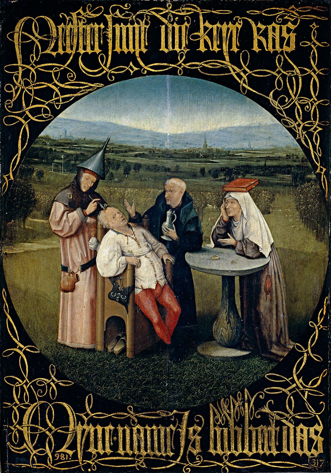 بدیهی ست که مسترپیس کلمهای ست ممزوج از دو کلمهی دیگر و ادامهایست محتمل بر جراحی سنگ اثر هیرونیموس بُس. در زمان بُس، جراحی سنگ نوعی طبابت کلّاشانه بود که با خارج کردن سنگ حماقت از پیشانی بیمار، او را از حماقتش میرهاندند […] «لوبرت» نامی ست که در ادبیات هلندی بارها آمده است و معرّف آدمیست که حماقت انسانیاش به منتهی درجه رسیده است. آنچه جرّاح از سر لوبرت بیرون میکشد سنگ نیست، بلکه گل است. یک گل دیگر از همان نوع روی میز سمت راست است. تشخیص معمول این است که اینها گلهای لالهاند و دلیل آمدنشان هم بازیای است که با کلمهی لاله شده است:در هلندی قرن شانزدهم لاله ضمناً بر حماقت و جنون دلالت میکرده است.» راوی اثر همان سنگ جراحی شده است، موجودی قضیبوار و حقیر. او لوبرت را سرور و استاد خطاب میکند و موجودی را که در رؤیاهایش میبیند «ریگ» میخواند. او میخواهد داستان این سنگ دیگر را روایت کند، داستان ریگی را که در یکی از رؤیاهایش دیده است. اولین بار که خوابش را میبیند، ریگ – که زن هم هست – شکل مومی لولهشده است، چیزی شبیه موم تأملّات دکارت. گرمای شومینه موم را تغییر شکل میدهد. راوی فرایند تغییرکردن ریگِ تخیّلاتش را تعریف میکند و توضیح میدهد که چطور در طی مشتوزدنی خلاق اعضا و جوارح ریگ را در خواب دیده و ساخته است. این زن پیچیده در پارچه – زنی که «میآید، میرود و هرگز باز نمیایستد»، زنی که در دو مسترپیس میبینیم – با همین شکلدادن عجولانه ساخته شده است، اما چندین و چند عضو حیاتی ندارد، زیرا سرورش آنها را زائد میدانسته است. این زن همان مسترپیس است