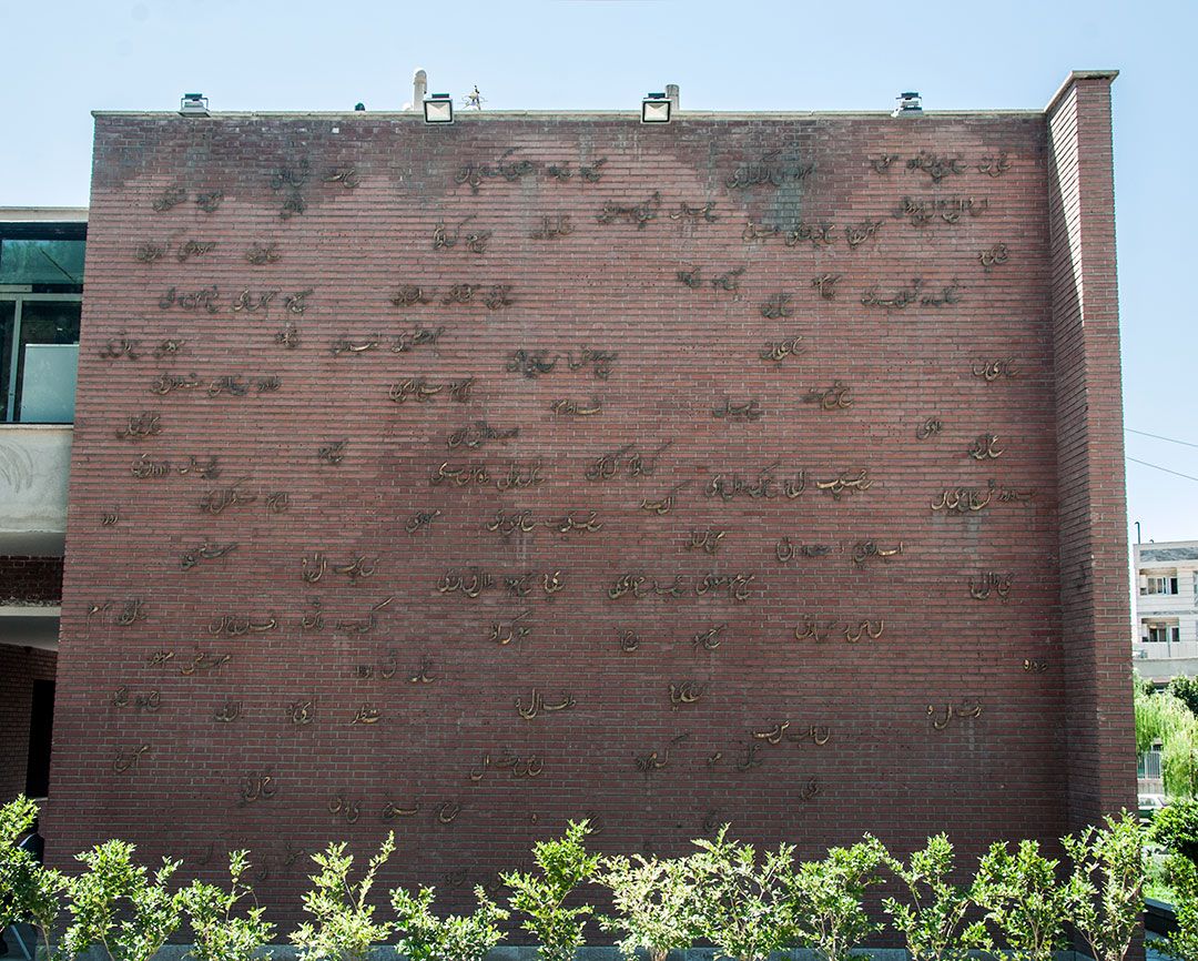 In 1929, by command of Reza Shah, on the ruins of the Qajar Palace, the first modern Iranian prison was built. Before Evin, Ghasr Prison was the only central prison of Tehran. A few days before the victory of the 1979 Revolution, prison walls were pulled down, setting the prisoners free. In 2004 it was closed down for good till 2008 that it was turned into a museum and the wall to a constructed colossal memorial plaque. Initially the wall was to bear some 150 names of political prisoners held in Ghasr in Pahlavi’s time. At various points certain names were eliminated till in the end some 80 adorned the wall. Some forenames refer to no political prisoner. Some were eliminated after they were installed on the wall. There are numerous holes on the wall that indicate several eliminated surnames.